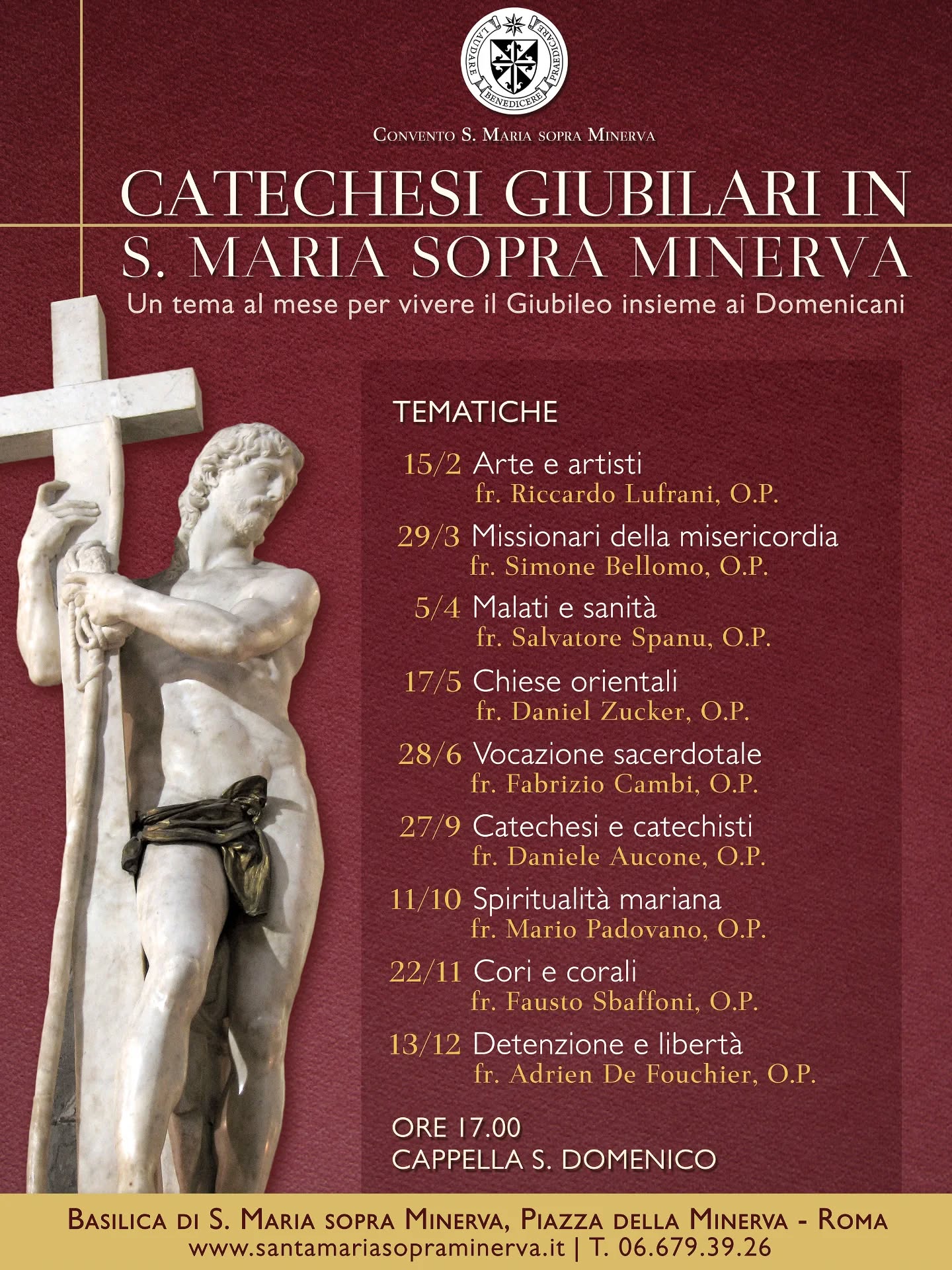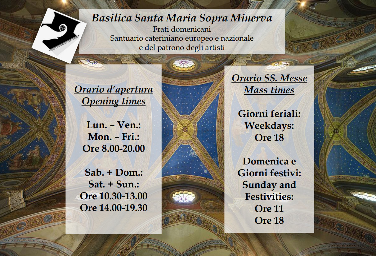 In the area currently occupied by the Basilica of Saint Mary of Minerva and by the former ex-convent, stood three temples dedicated to Minerva, Isis and Serapis. Already in the eight century, next to these temples, stood a small church that pope Zachary conceded to Basilian nuns who fled the East. In 1255, Alexander IV established a community of converted in this place. The Church belonged to the Benedictines of Campo Marzio. It was only in 1256 that the brother preachers settled there, and in 1275, they also obtained the property of the Church thanks to the intervention of brother Aldobrandino Cavalcati. It is likely that the convent of Saint Mary of Minerva remained for approximately 10 years under the direction of the first Dominican convent of Rome: that of Santa Sabina. In effect, it seems that the first prior of the community only arrived in 1287. [more ...]
